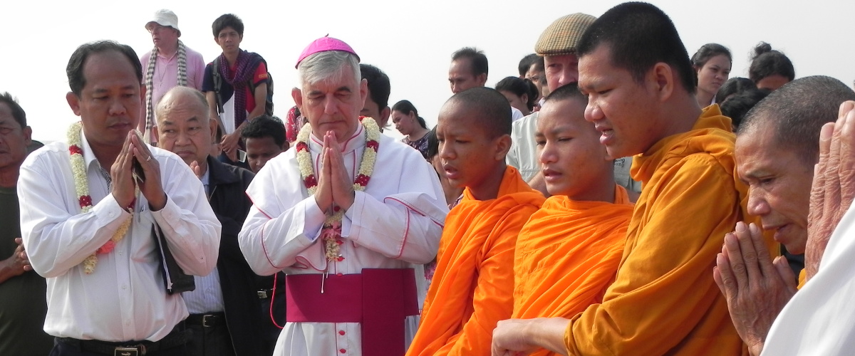 An inter-religious ceremony was recently held to bless the land for the Xavier Jesuit School Project. Msgr Enrique (Kike) Figaredo SJ, Apostolic Prefect of the Battambang Prefecture in Cambodia presided with His Excellency, Mr Oum Reatrey, the Vice-Governor of Banteay Meanchey Province with responsibility for Education, at the ceremony which took place on January 29, 2015, in a temporary tent erected for the purpose on top of the land-fill just opposite the site where the foundations of the first building are already being constructed. Before the two blessing rites, Fr Oh In-don SJ, Delegate of the Korea Provincial for the Cambodian Mission and Country Representative of Jesuit Service Cambodia, explained why he chose to locate the new school project in the remote town of Sisophon in Banteay Meanchey Province. “The school project has the goal to improve the quality of education in Cambodia through the education of young people from poor backgrounds,” he said.
