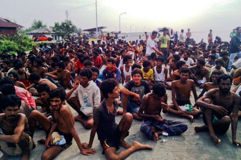 Photo caption: Rohingya refugees wait with uncertainty after arriving by boat to Langsa, East Aceh, Indonesia on 15 April 2015 (Nasruddin FPRM)
