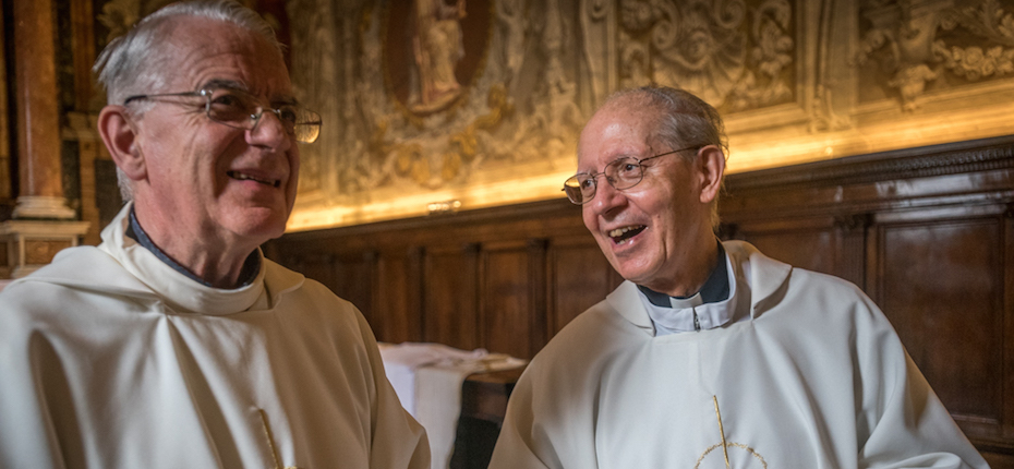 Main photo: Fr Frederico Lombardi and Superior General of the Society of Jesus, Fr Adolfo Nicolás, before the start of the opening mass for General Congregation 36 at the Church of the Gesu on October 2, 2016.  This was Fr Nicolás’ final mass as Superior General.
