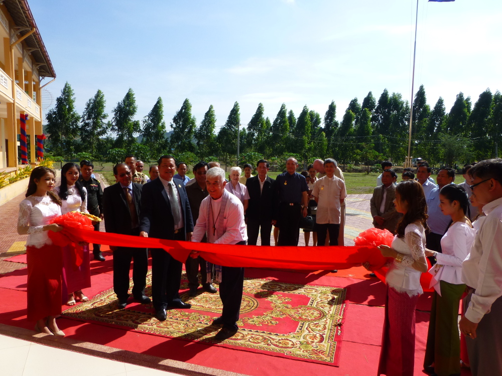 Fr Vu paid tribute to those who started the education project – Fr Ashley Evans SJ, Ms Sonai, Mr Touen, Scholastic Paul Nguyen SJ. He also thanked the many people who made the school possible – the Ministry of Education, the provincial office of Education, the district office of Education, the commune chief, village chief, local schools: Phnom Bak, Teuk Thla, Keap, Banoy, O’Ambel, and their wonderful benefactors and friends, several of whom had flown to Cambodia for the occasion.