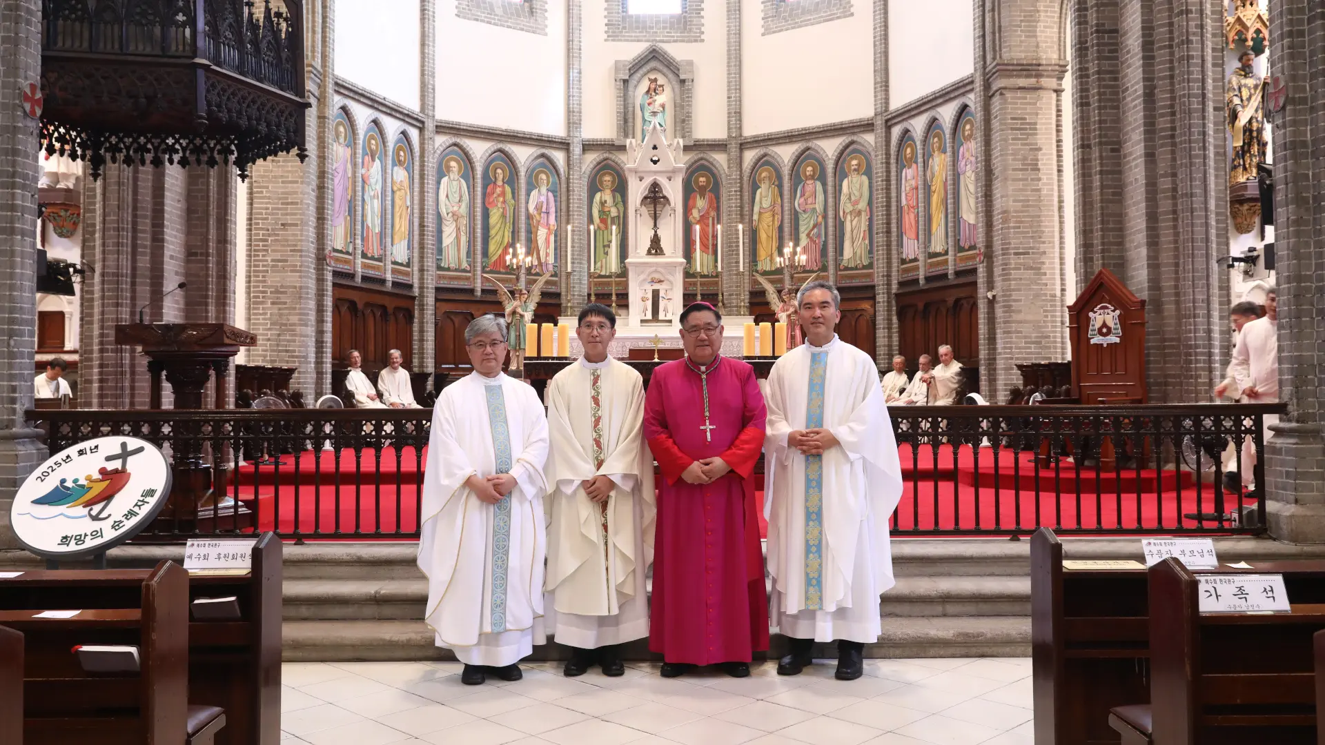 L-R: Korean Provincial Fr Yong-su Pascal Kim SJ, Fr Jeong-su Thomas Aquinas Nam SJ, Bishop Kyung-sang Paul Lee, and Province Socius Fr Chang-hyon Pius Lee SJ