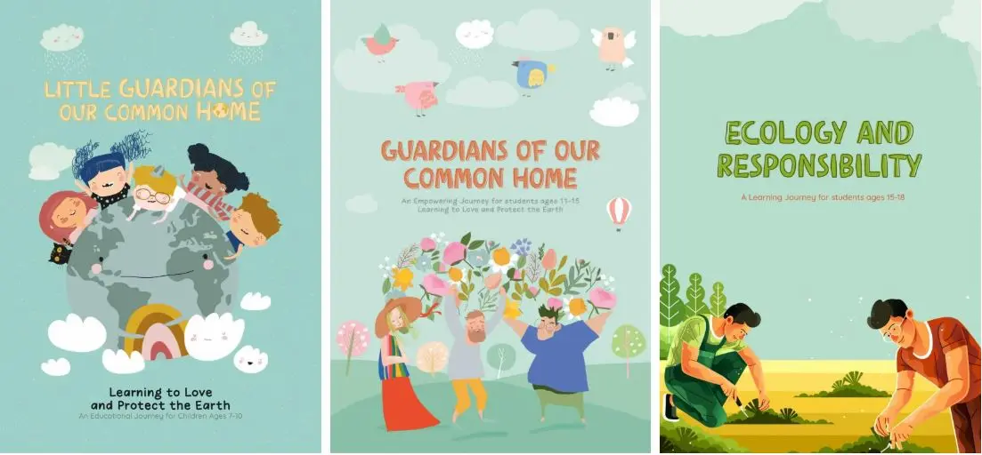 For example, the “Little Guardians of Our Common Home” workbook tailored for children aged 7 to 10 encourages children to go outside to see, listen, and touch their surroundings and to journal their observations. QR codes link to videos where children can find answers to questions in the workbook. Activities include building a shelter for small birds or insects and a relay game that teaches waste segregation.
