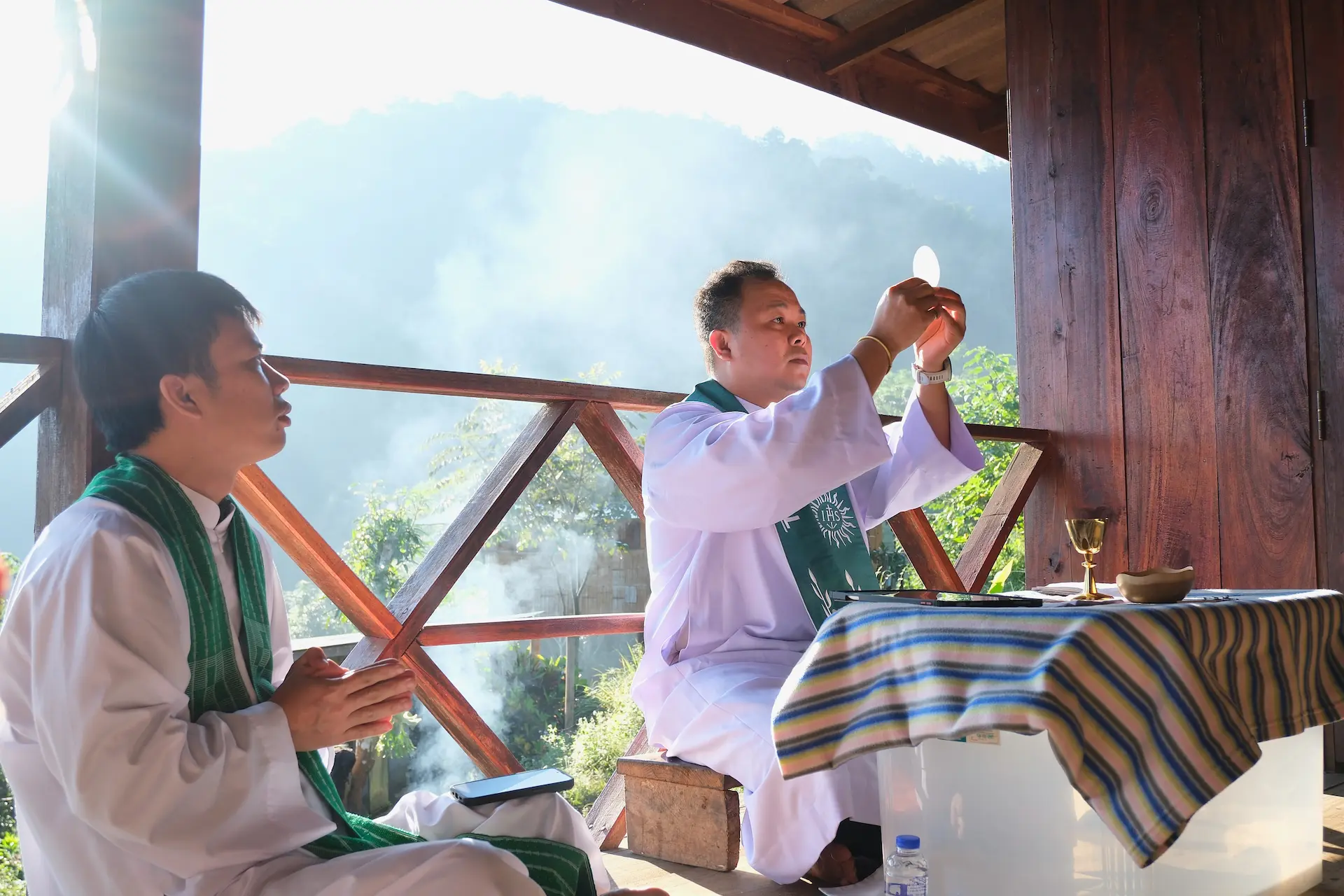 The second day began with Mass celebrated amidst a “sea of clouds” created by the morning mist, as we praised God for the beauty of nature that surrounds and sustains us. Afterwards, the villagers showed us how to dye fabric using natural colours—such as yellow from turmeric. We then planted two mangosteen trees as a reminder of our responsibility to care for creation in return for all we receive from it. We concluded our trip by sharing lunch with the villagers.