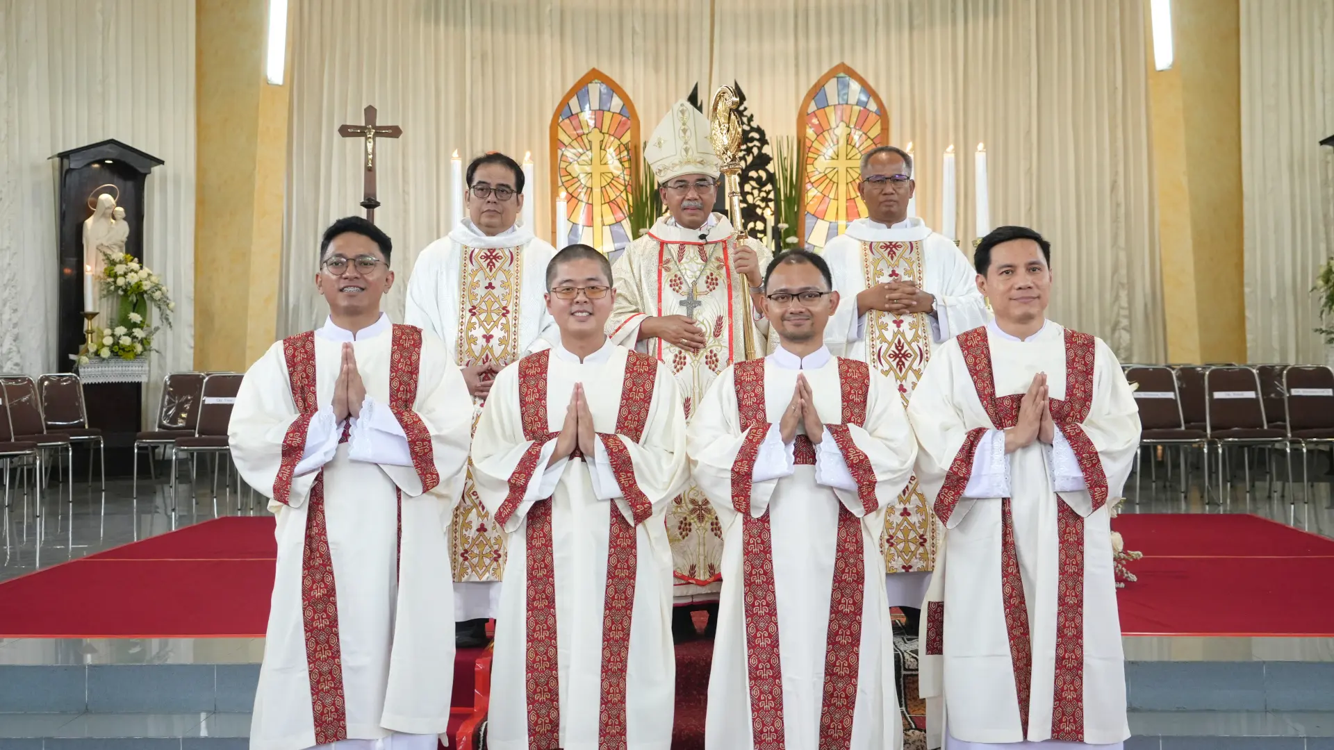 The four Jesuit ordinands are Andreas Agung Nugroho, Amadea Prajna Putra Mahardika, Frederick Ray Popo, and Klaus Heinrich Raditio.