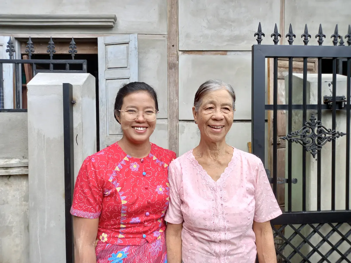 Su with her mother outside their newly constructed home in Myanmar, rebuilt after the earthquake with support from Jesuit Mission partners.